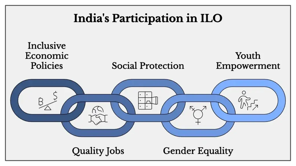 India participated in The International Labour Organisation (ILO) which has scheduled its 352nd Governing Body meeting in Geneva, Switzerland. It will take place from October 28 to November 7, 2024. Ms. Sumita Dawra, Secretary of the Ministry of Labour and Employment will head the Indian delegation. They will play a vital role in the conversations. Ms. Dawra focuses on economic strategies that promote good job opportunities, boost social security, and encourage balance between genders. She emphasizes India’s local efforts. Their goal is to ensure the availability of decent work for everyone, especially women and young people. The efforts align with the ILO’s expectation of establishing a modern social contract.